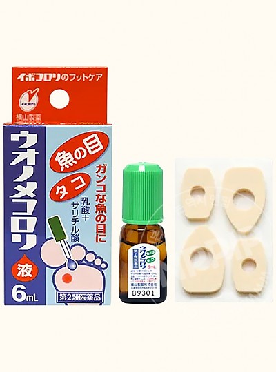 아픈 환부를 보호하는 티눈 패드가 포함된 티눈, 굳은살 제거제 우오노메코로리 6ml