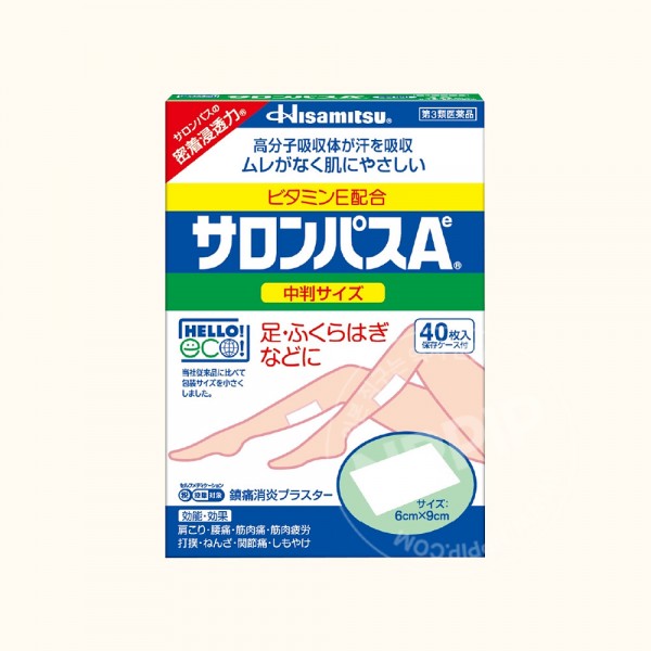 일본 대표파스, 혈액 순환 촉진과 통증완화 동시 작용! 9cmx6cm 중형 40매.