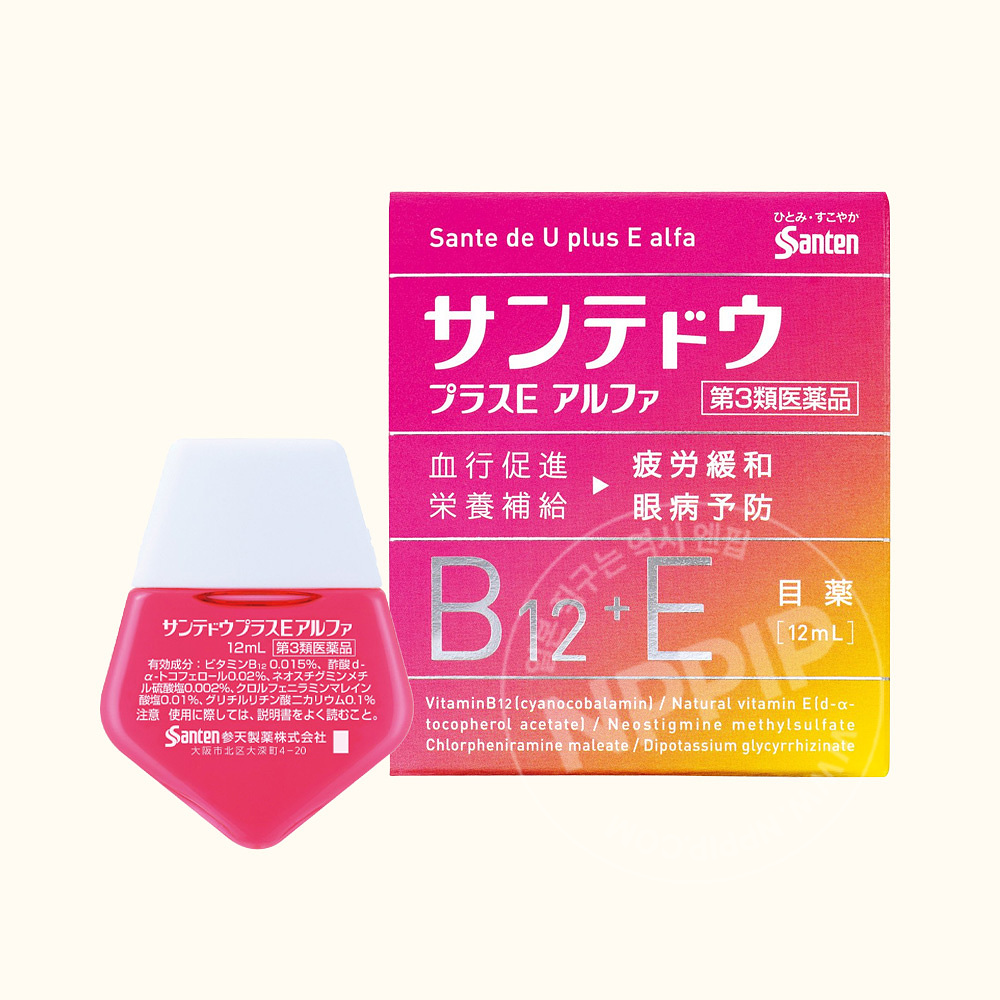 산테도우플러스E알파는 그 모양체근에 직접 작용하여 눈의 신경 기능을 회복시키는 붉은 비타민 B12를 비롯하여 말초 혈관의 혈류를 좋게 하는 천연형 비타민E 등 5가지 유효 성분을 함유하여 눈의 피로 개선과 눈병 예방 등에 효과적인 안약입니다.여러분의 「히토미·건강」한 생활에 유용하게 써 주세요.
