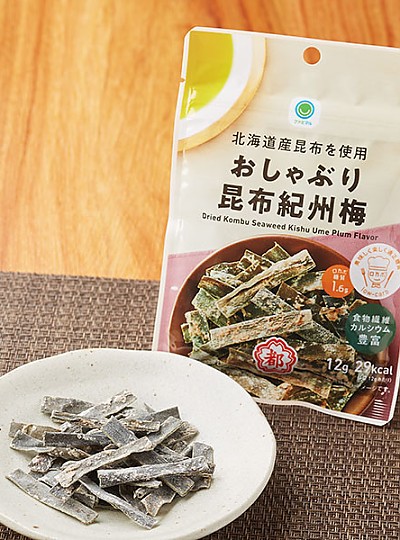 홋카이도 히다카산 다시마 분말을 사용하여 깊은 감칠맛을 낸 꽈배기 모양의 튀김 스낵