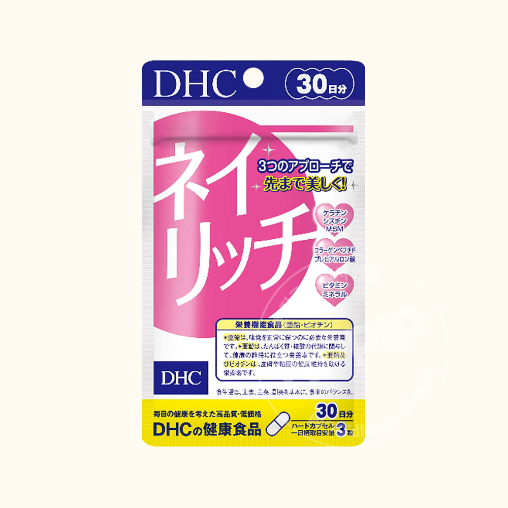 네일 아트 등 없어도, 윤기 있고 어렴풋이와 분홍색을 띠고 있는 것만으로 " 멋진 사람"이라는 인상을 주는 작은 부분. 작지만 중요한 포인트입니다. DHC의 『 네일 리치 』은 이 작은 포인트의 아름다움를 지원하는 보조제. 부드러운 힘을 겸비한 아름다운 꽃 조개를 찾아서, 1알에 구성 성분, 서포트 성분, 미용 성분을 다각적으로 배합했습니다.케라틴과 시스틴, MSM(메칠슬포닐메탄)등의 구성 성분은 강한 기준 마련, 순례와 환생에 필수적인 비타민이나 미네랄 등의 서포트 성분이 건강함을, 콜라겐 펩티드와 프레 히알루론산※등의 미용 성분으로 매끄러운 수분을 안쪽부터 각각 지원합니다.