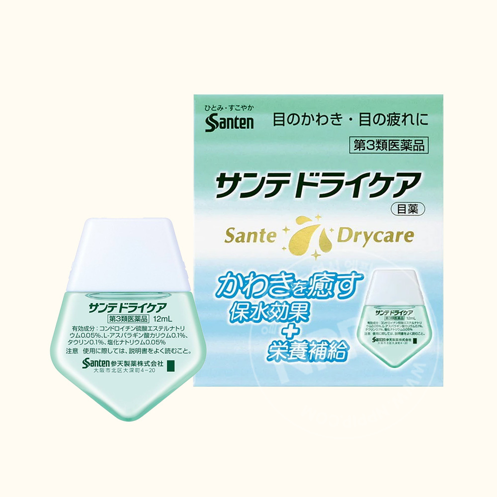 산테 드라이 케어에는, 눈의 건조함 등을 치유하기 위한, 3가지 유효 성분이 함유되어 있습니다.함유 성분 중 하나인 콘드로이틴 황산 에스테르 나트륨은 눈 표면의 수분을 체류시키고, 보수하는 작용이 있습니다.타우린과 L-아스파라긴산 칼륨은 눈의 조직에 영양을 주고 신진 대사를 활발하게 해줍니다.