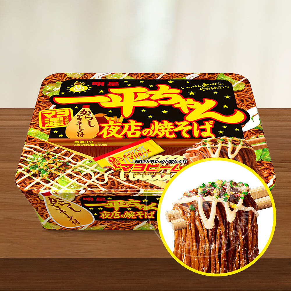 유부 면(밀가루(국내 제조), 식물 유지, 소금, 소스, 당류), 소스(소스, 소스 마요네즈, 당류, 향미유, 식물 유지, 소금, 타은백 가수 분해물, 소스 가공품, 향미 조미료, 포크 추출물, 향신료, 양조 식초), 카야크(양배추), (마요네즈식 소스 플레이크, 향신료, 갈파래, 붉은 생강, 향미 조미료)/캐러멜 색소, 조미료(아미노산 등), 탄산 칼슘 카은스이, 산미료, 유화제, 향료, 향신료 추출물, 산화 방지제(비타민 E), 탄산 마그네슘, 카로티노이드 색소, 비타민 B2비타민 B1(일부에 달걀·우유 성분, 밀·새우·오렌지·참깨·콩·돼지 고기, 사과를 포함)