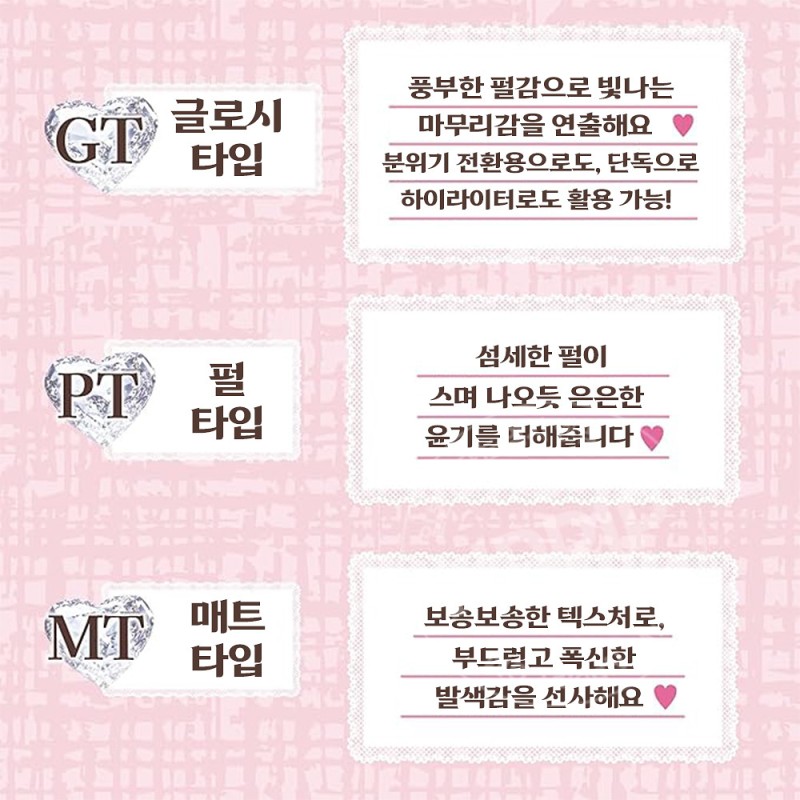 [글로시 타입], [펄 타입], [매트 타입]