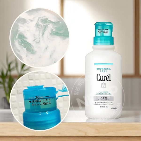 건조로 인한 습진까지 케어해주는 큐렐의 세라마이드 입욕제입니다.