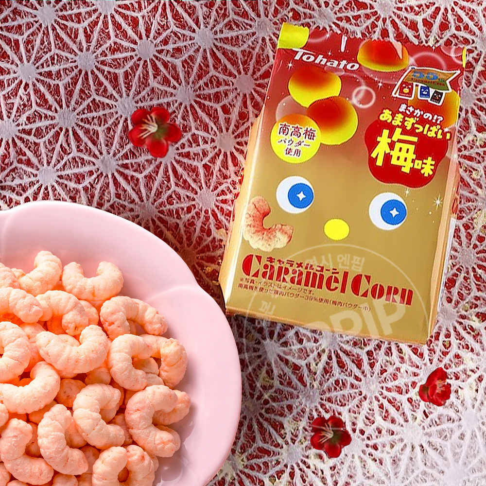 부드럽고 바삭바삭한 식감에 입에 넣으면 사르륵 녹는 캬라멜콘에 새콤달콤한 매실맛을 첨가했습니다