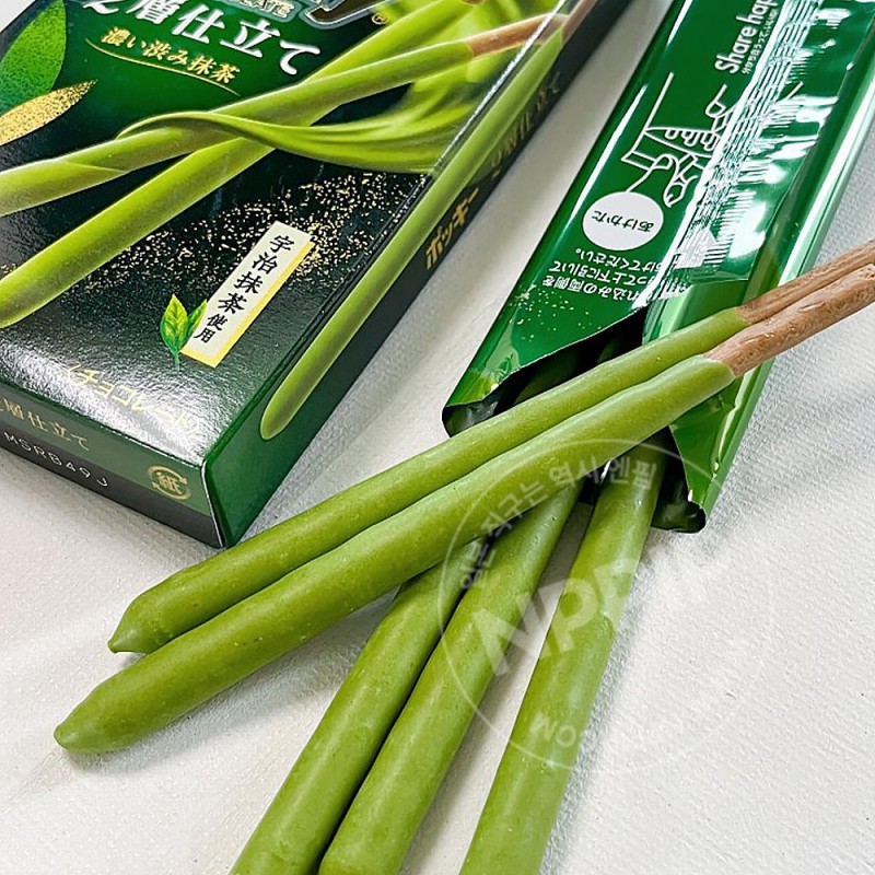 쌉싸름하고 깊은 맛이 특징인 2종의 말차를 듬뿍 섞어 만든 농후 말차 초콜렛 포키입니다!