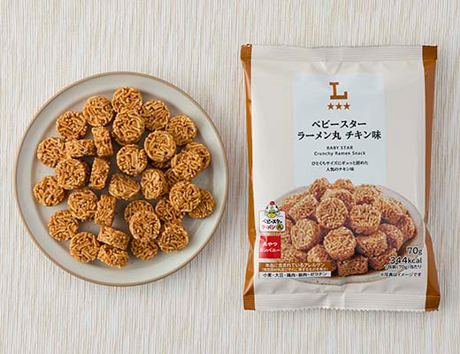 베비스타 라멘의  고소한 치킨 풍미를 한입 크기로  꽉 뭉쳐낸 매력적인 스낵