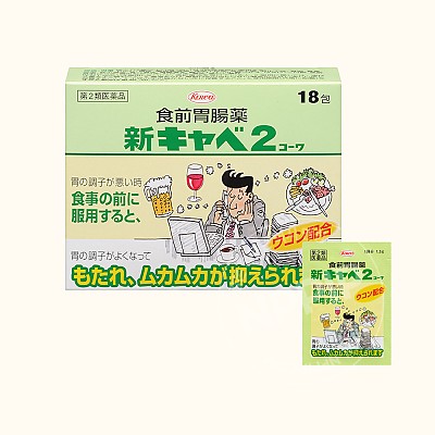 식전 복용, 위통, 소화불량, 메스꺼움,숙취 완화에 제격인 신캬베2 코와 18포-신카베2 (일본위장약,일본소화제)