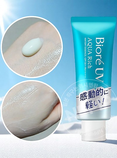 새롭게 리뉴얼 된 아쿠아리치 워터리 에센스 선크림 백탁 현상이 없고 가벼운 제형이 특징