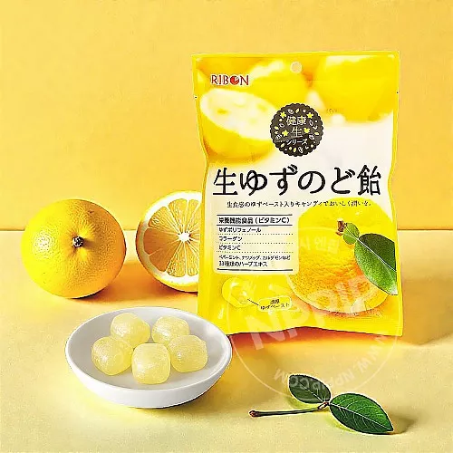 리본 생 유자 목캔디 사탕 48g