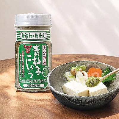 훈도킨의 유즈코쇼는 (유자 후추) 익기 전의 청 유자의 껍질을 고추와 소금을 사용하여 숙성시킨 일본식 향신료 입니다.