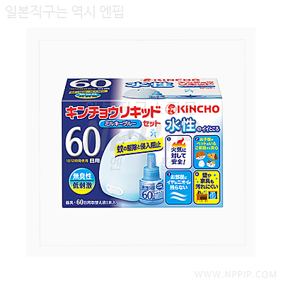 [킨쵸]수성 킨쵸 리퀴드 모기 퇴치 60일 무취성 밀키 블루 세트