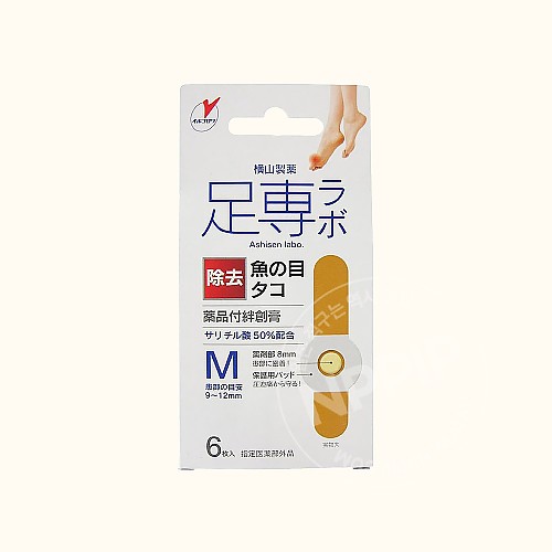원터치에 부착되는 티눈, 굳은살 제거제 아지센라보 우오노메코로리 반창고 M사이즈 6매입
