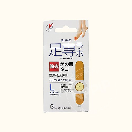 원터치에 부착되는 티눈, 굳은살 제거제 아지센라보 우오노메코로리 반창고 L사이즈 6매입